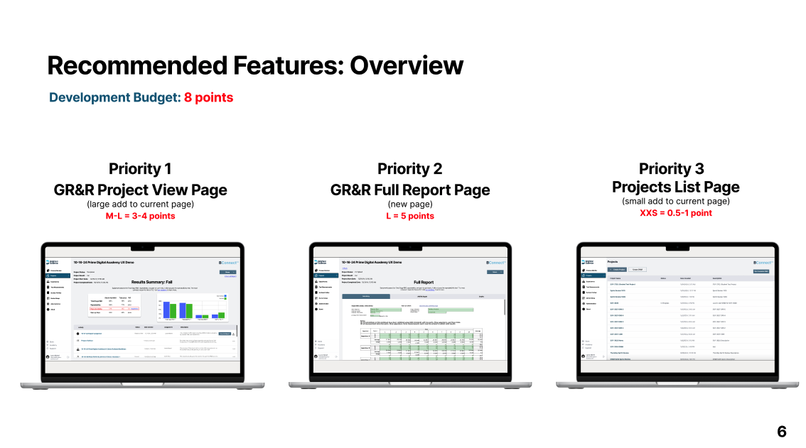 After doing a rapid prototyping sketch exercise, our design team met with the development team to discuss resource budget and restraints. We then dot voted, narrowing our 75 feature cards down to 10 plausible new features for Brighton Science.