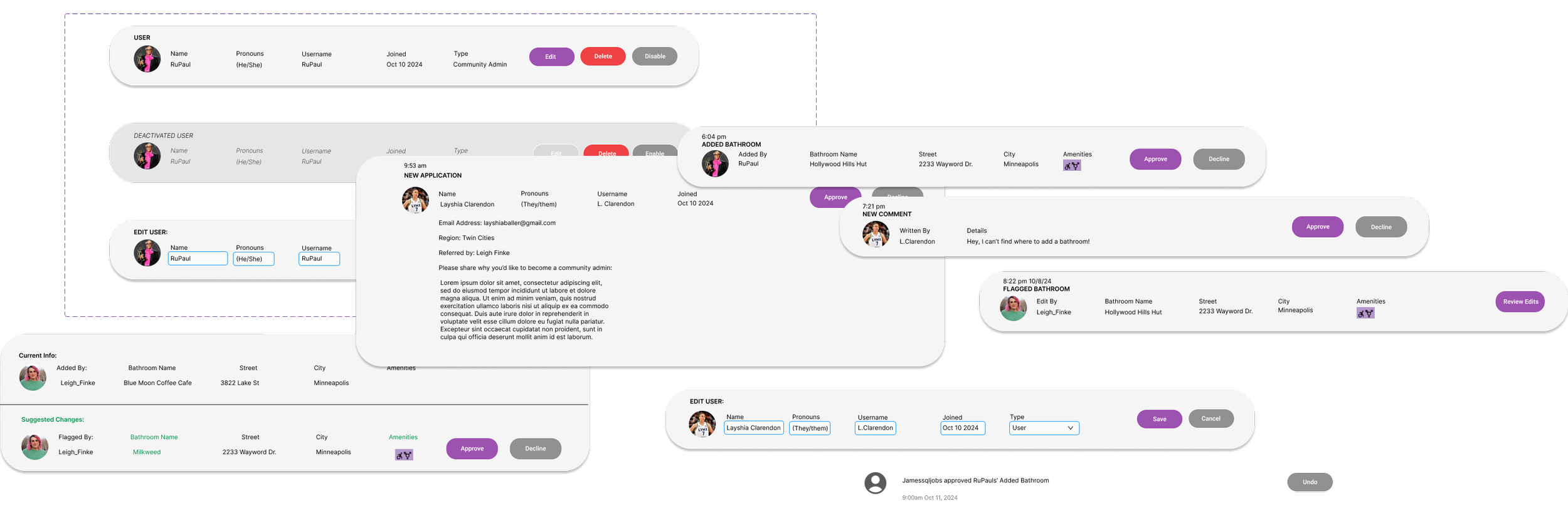 Flagged Bathrooms > where an admin goes to review what members have flagged